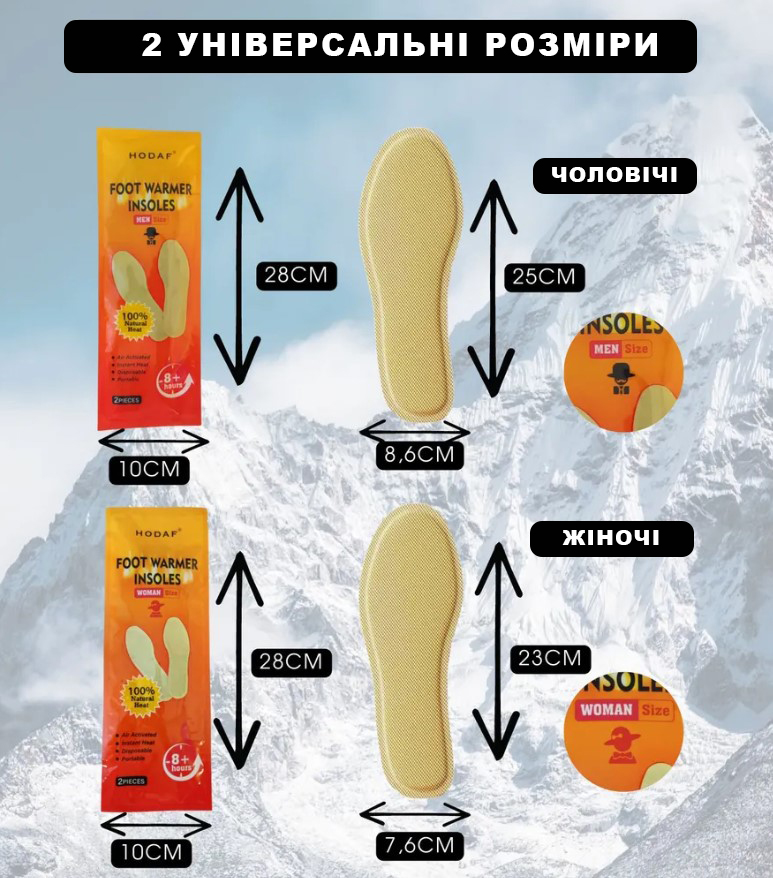 Устілки розроблені спеціально для того, щоб зігрівати та перешкоджати переохолодженню ніг. Термоустілки стануть вашим незамінним супутником у подорожах і прогулянках у холодну пору року, у приміщенні та на вулиці.